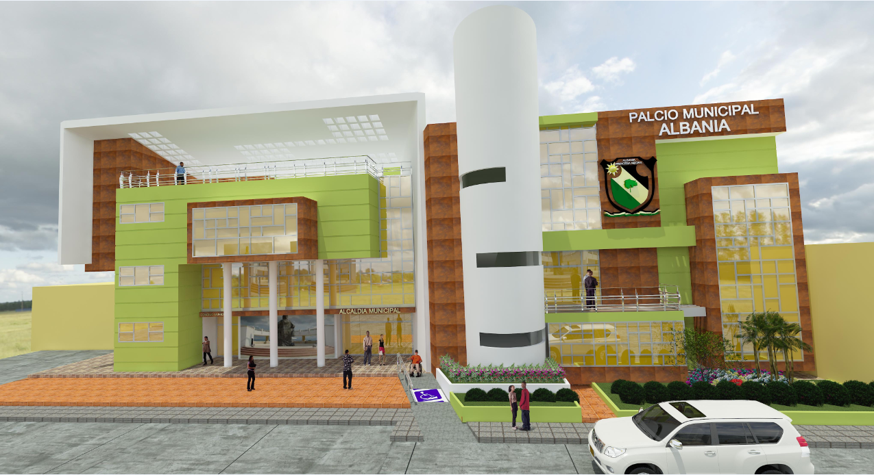 3D Front Facade Elevation View of Commercial Building DWG File