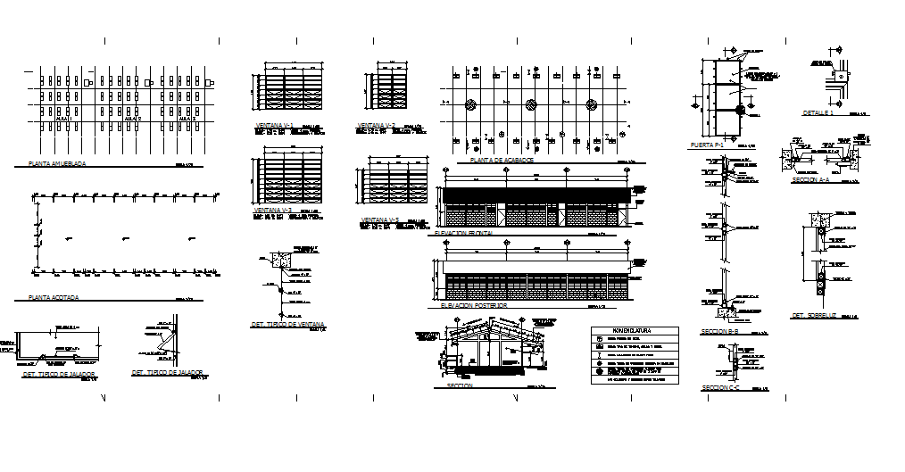 Construction detail dwg file, Construction detail with dimension detail, naming detail, reinforcement detail, center line plan detail with numbering detail, roof elevation detail, wall section detail, etc.