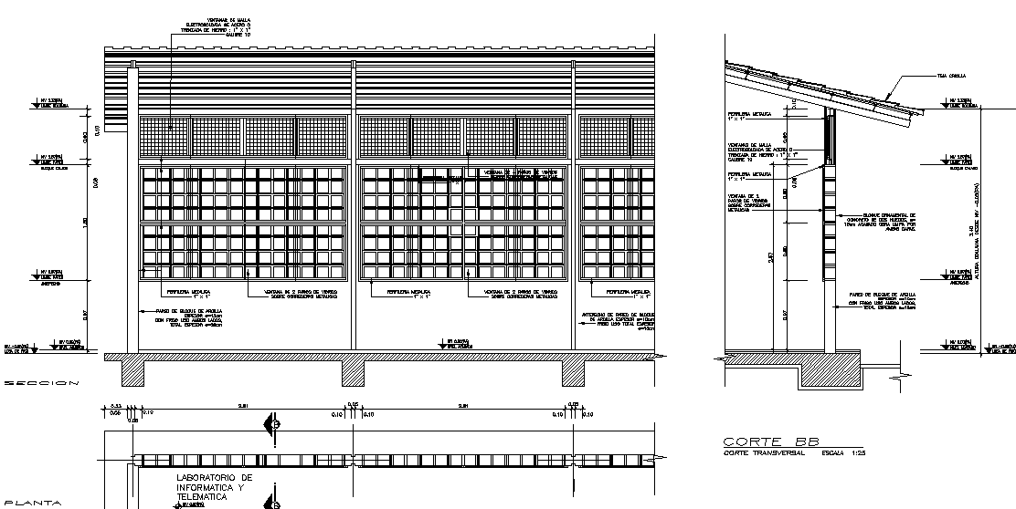 Elevation and section wall detail dwg file, Elevation and section wall detail with naming detail, dimension detail, roof detail wall elevation detail, etc.