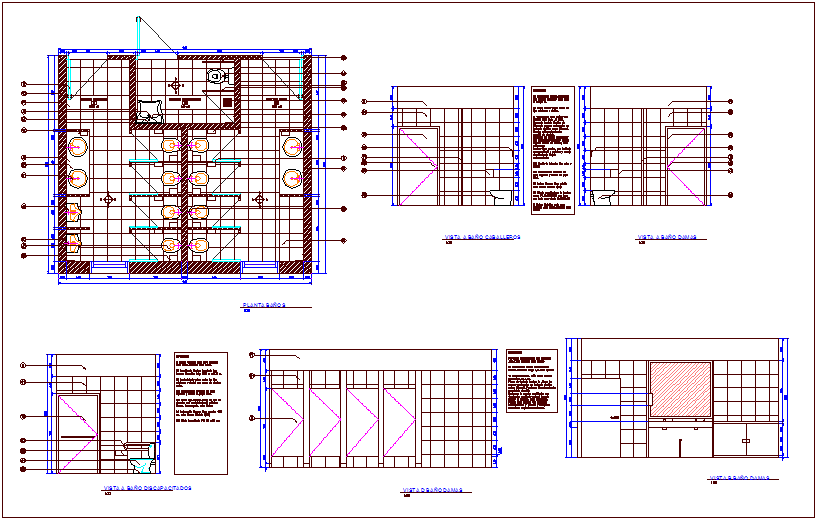 Bathroom plan with view of bathroom knight for center of communal participation dwg file