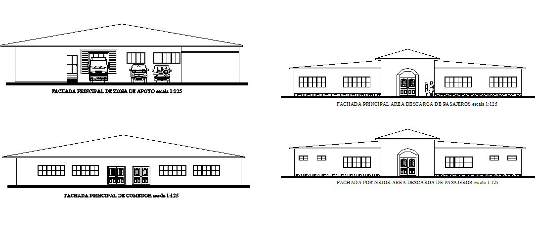 Elevation working detail dwg file, Elevation working detail with dimension detail, naming detail, front elevation detail, right elevation, left elevation, back elevation detail, furniture detail with door and window detail, landscaping detail with tree and plant detail, plinth level detail, etc.