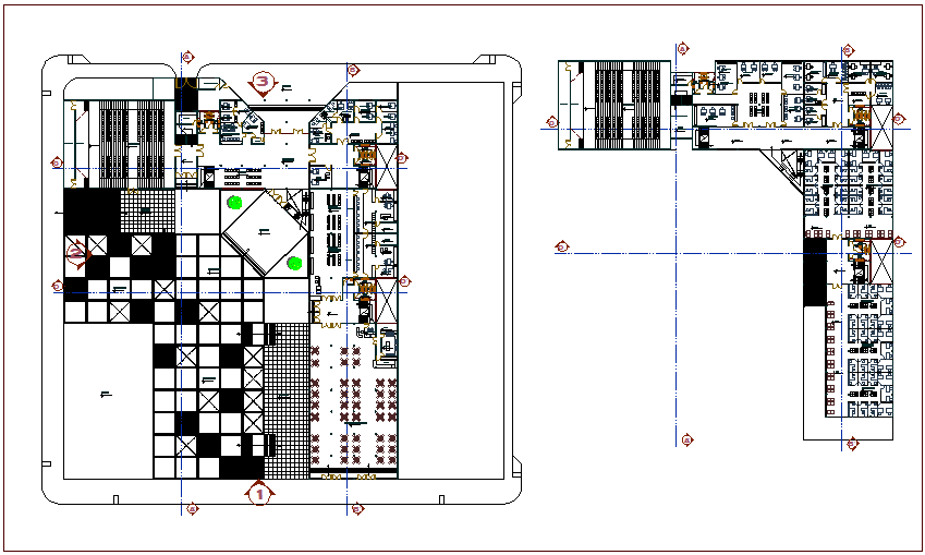 Municipality building plan with detail view dwg file in plan with area distribution,wall view,