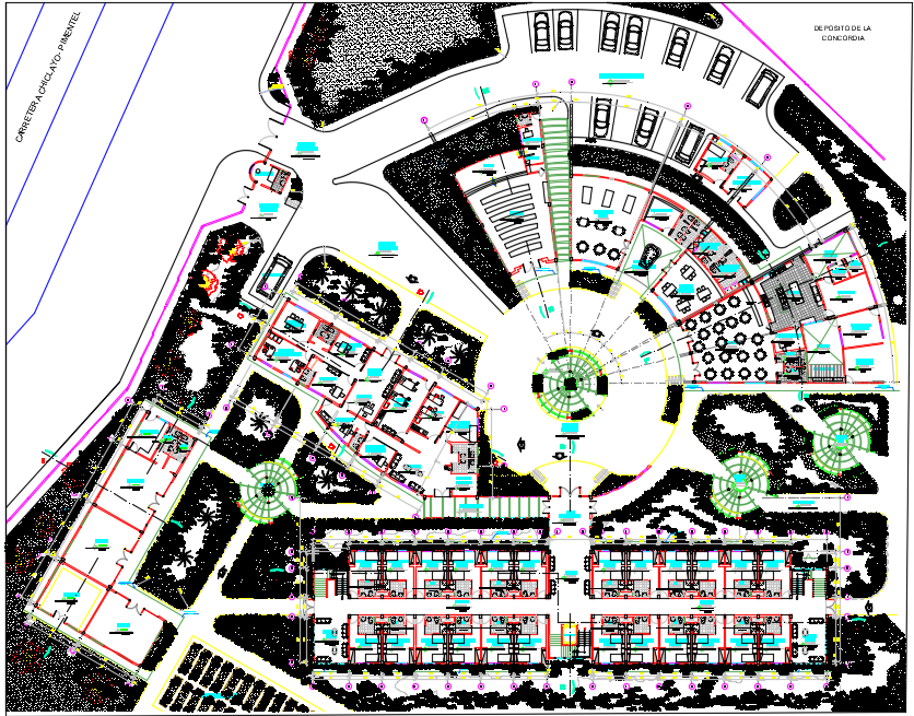 Commercial working plan detail dwg file, Commercial working plan detail with dimension detail, naming detail, center line plan detail with numbering detail, cut out detail, landscaping detail with tree and plant detail, etc.