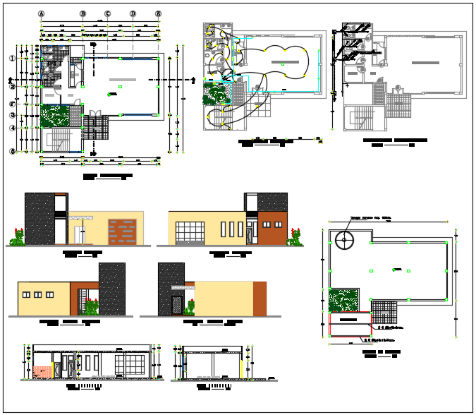 Plan and elevation detail dwg file, Plan and elevation detail with dimension detail, naming detail, furniture detail with door and window detail, front elevation detail, side elevation detail, roof elevation detail, etc.