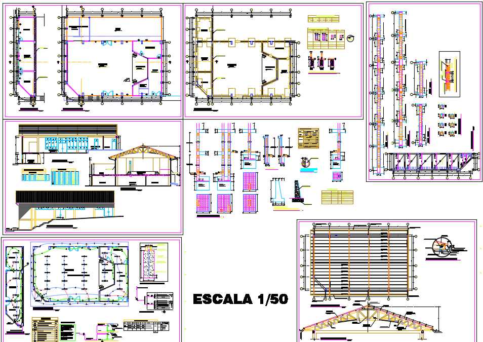 Foundation plan and Construction working plan detail dwg file, Foundation plan and Construction working plan detail with dimension detail, naming detail, wall section detail, center line plan detail with numbering detail, roof elevation detail, elevation detail, etc.