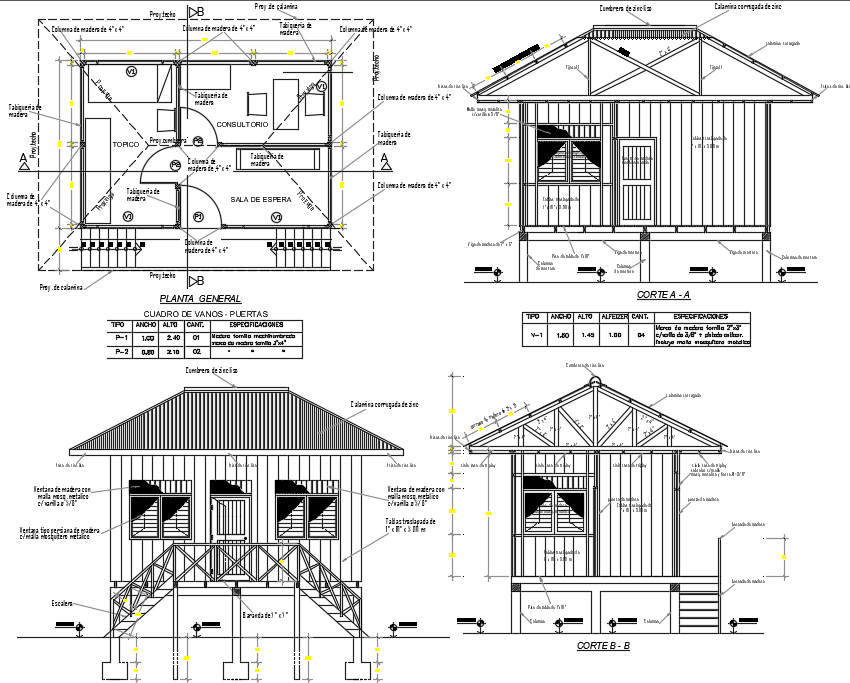 Plan and section working plan detail dwg file, Plan and section working plan detail with dimension detail, naming detail, foundation plan detail, section A-A’ detail, section B-B’ detail, door and window detail, roof truss detail, etc.