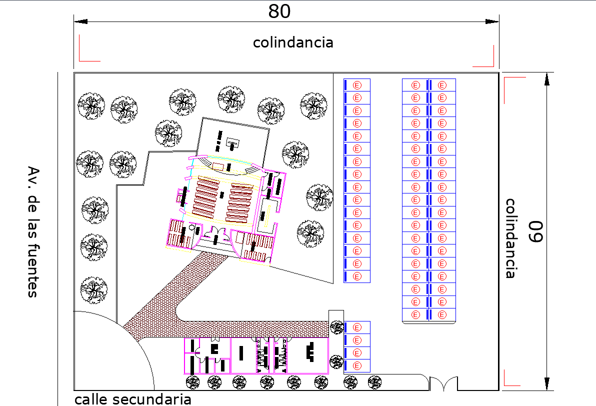 This church design DWG presents a fully measured architectural layout covering an 80 60 site plan with clearly defined circulation areas, landscaped surroundings, and structured seating arrangements. The drawing includes the central church building footprint with detailed altar placement, entrance pathways, and spatial distribution for interior movement. Elevation views illustrate the external façade composition, showcasing the front structural form, window design, vertical elements, and decorative treatment. Section drawings offer clarity on height distribution, roofing structure, internal levels, and material alignment for accurate construction reference.