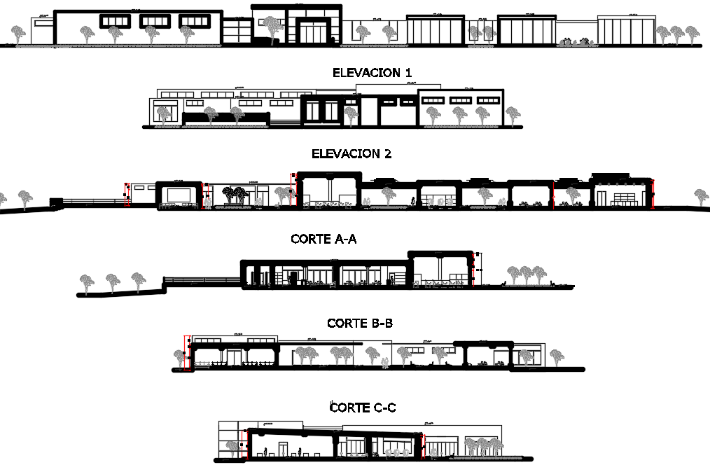 Elevation and section wall detail dwg file