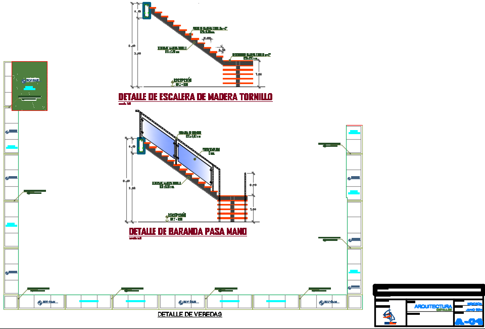 Stair section and veranda detail dwg file, Stair section and veranda detail with dimension detail, naming detail, reeling detail with glass detail, small garden detail, etc.