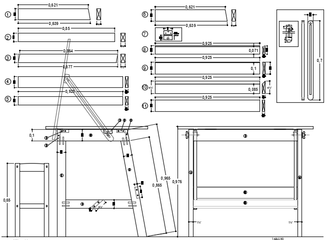 Table plan and elevation detail dwg file, Table plan and elevation detail with bolt nut detail, numbering detail, lock system detail, etc.