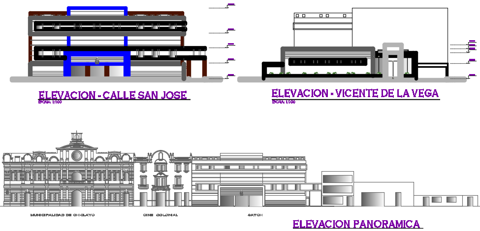 Commercial Elevation working detail dwg file, Commercial Elevation working detail with dimension detail, naming detail, front elevation detail, left elevation detail, furniture detail with door and window detail, plinth level detail, etc.