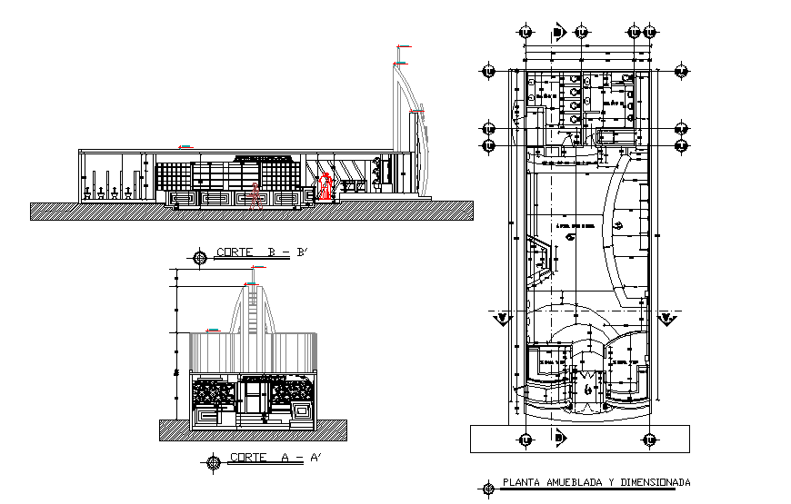 Plan and section center line plan detail dwg file, Plan and section center line plan detail with dimension detail, naming detail, section A-A’ detail, section B-B’ detail, section line detail, etc.