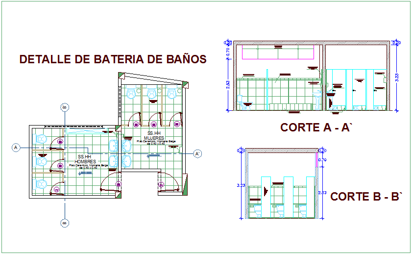 Bathroom plan,elevation and section view of community center dwg file