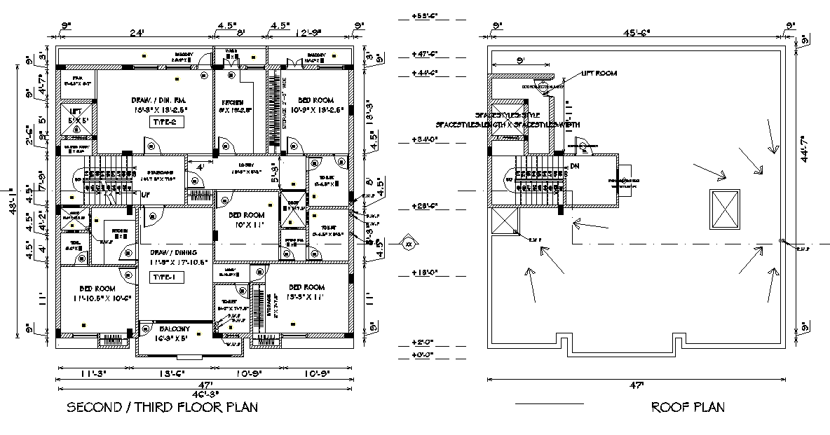 Second floor plan and roof plan detail dwg file, Second floor plan and roof plan detail with dimension detail, naming detail, section detail, stair detail, cut out detail, etc.