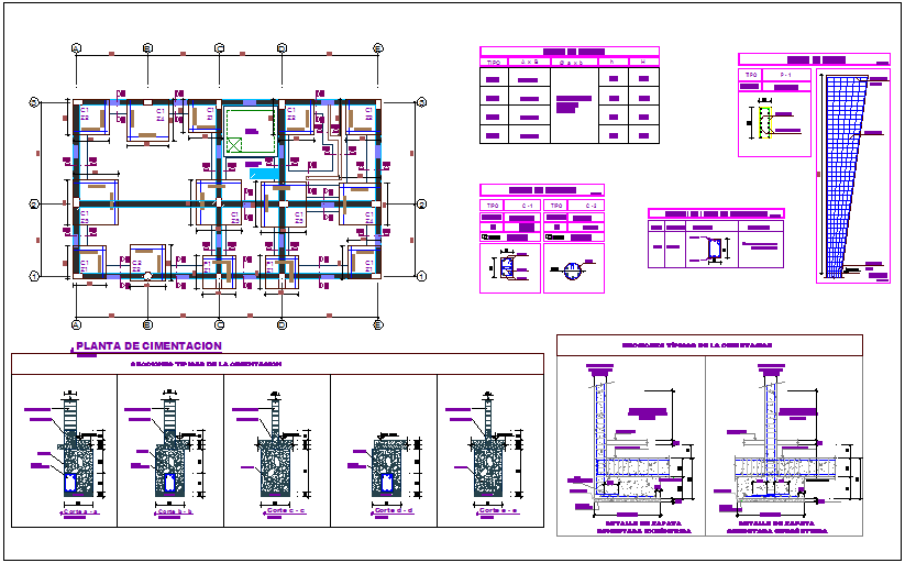 Foundation plan with construction detail of community center dwg file in foundation plan with