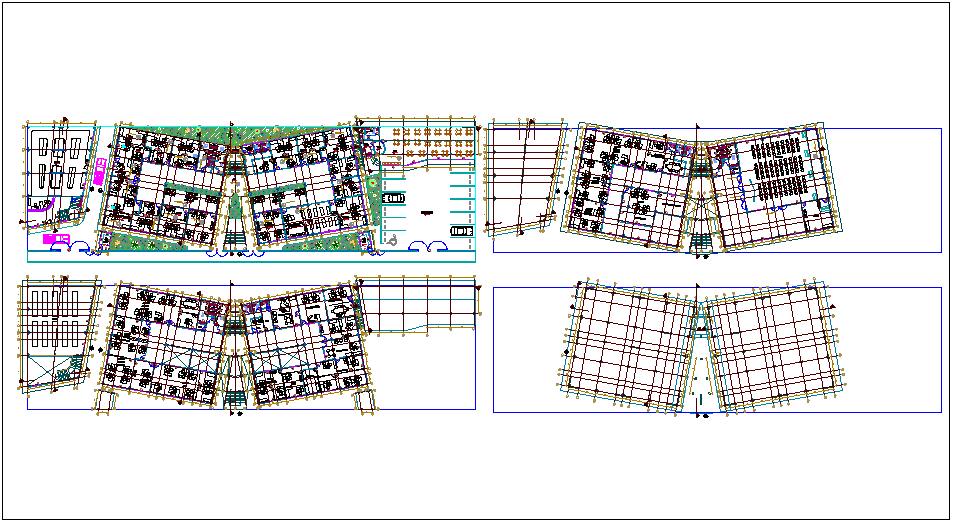 Architectural floor plan of corporate office dwg file in first floor plan with view of area distribution and wall view,entry way,flooring view,tree view,parking area,different section of