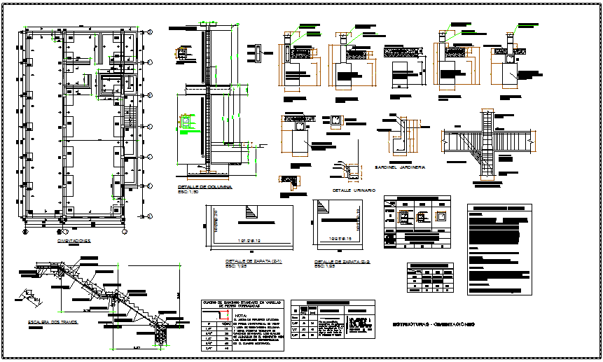 Foundation plan with construction detail of maternity and pediatric care center dwg file