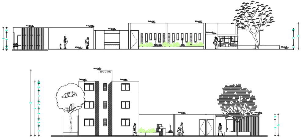 CORPORATE BUILDING SECTION WITH DETAILING. DETAIL OF LEVEL,FACADE AND CLADDING DETAIL OF WALL, PARTITION DETAIL OF WALL AND SHOWING WINDOW IN DIFFERENT LEVEL CREATING PATTERN.