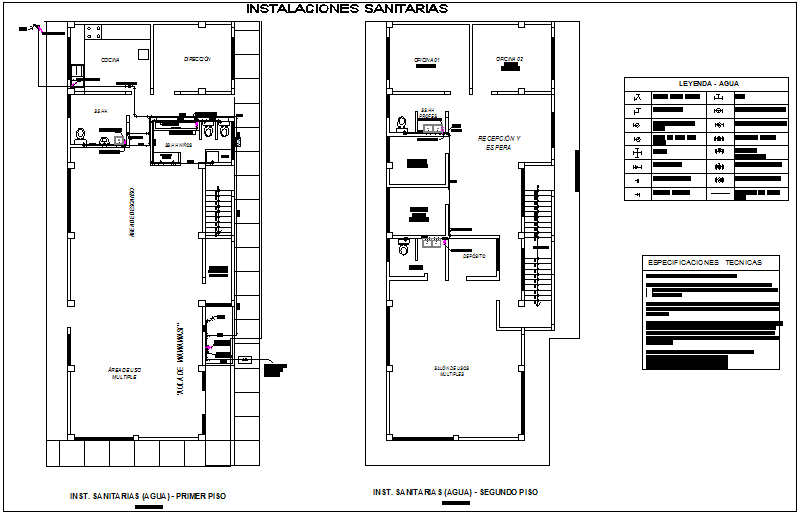 Sanitary installation view with its legend for maternity and pediatric care center dwg file in first
