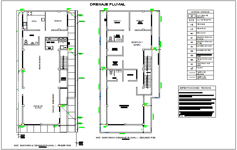 Drainage water line detail with plumbing detail for maternity and pediatric care center dwg file
