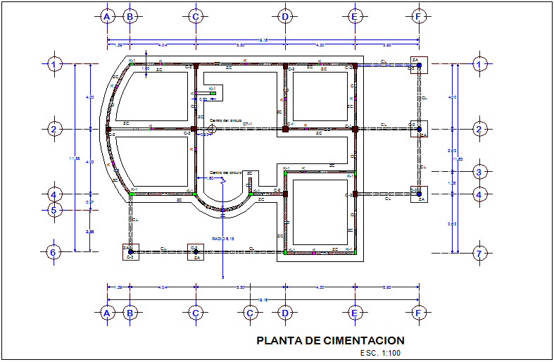 Foundation plan of office dwg file in plan with view of area distribution and view of wall and column view with column mounting position for foundation with necessary dimension.