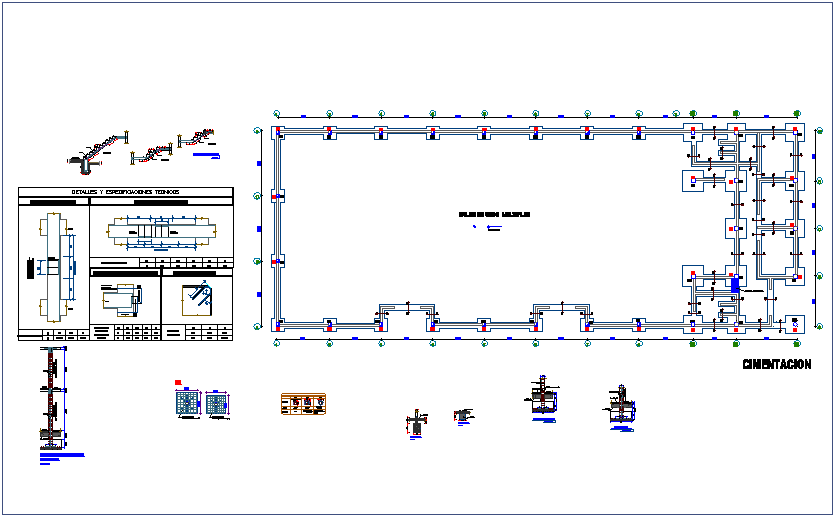 Foundation plan with construction detail of community center dwg file in plan with view of area