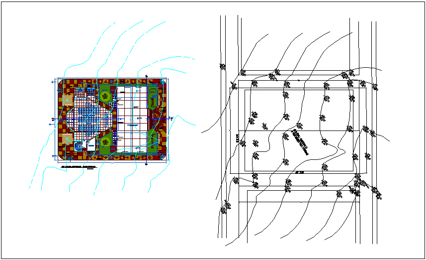General plan with area perimeter plan of multi use center dwg file