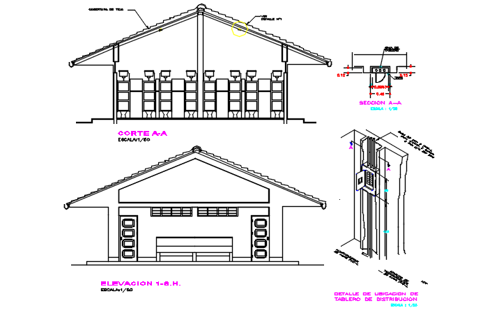 Elevation and section detail dwg file