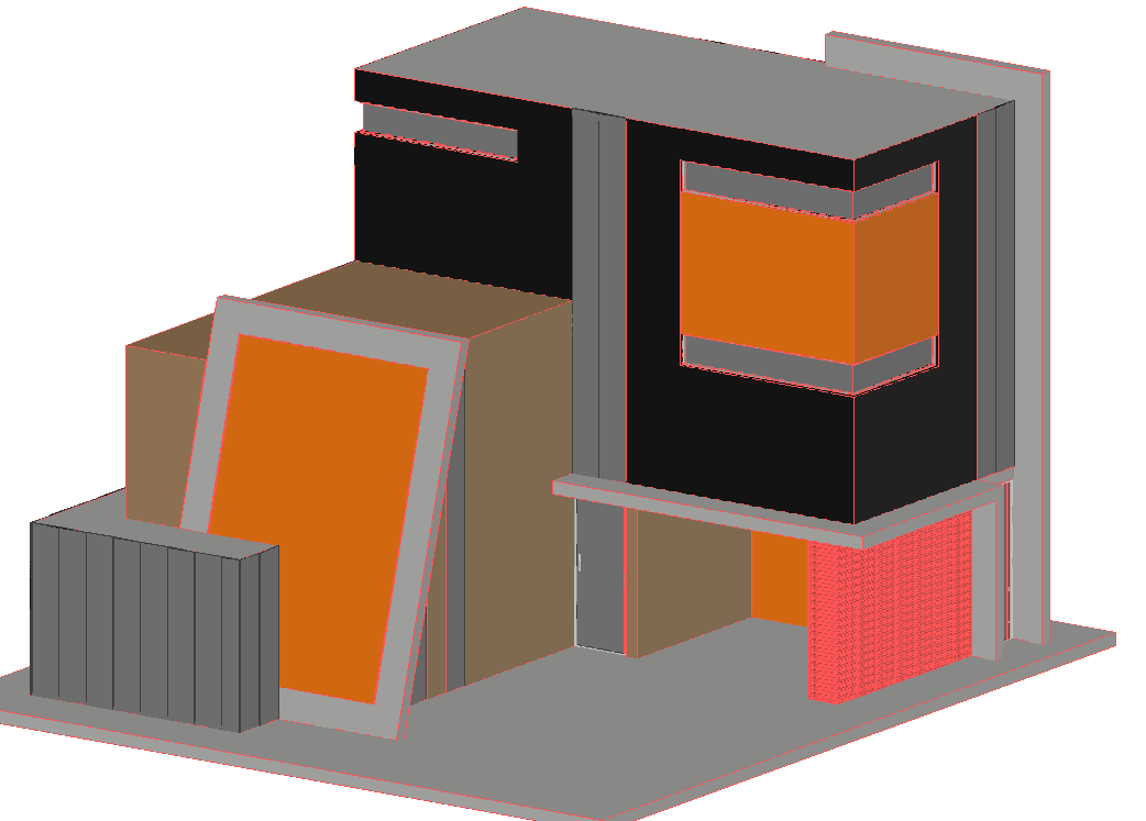 This modern house design DWG file offers a fully detailed 3D modeled residential structure created with accurate measurements, clean geometry, and complete architectural layering. The model includes balcony projections, shading panels, extended slab treatments, large glazing areas, and a sharply defined exterior volume that highlights the modern architectural language. The file also features measured facade elements such as vertical fins, boxed window frames, floor slabs, structural walls, and a compact footprint that enhances efficient land use. Each surface and massing block is carefully constructed to support architectural visualization and drafting workflows.