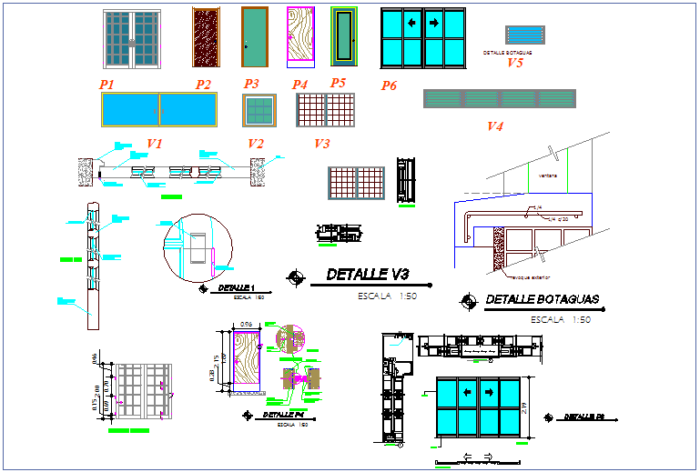Door and window elevation and section view for office dwg file