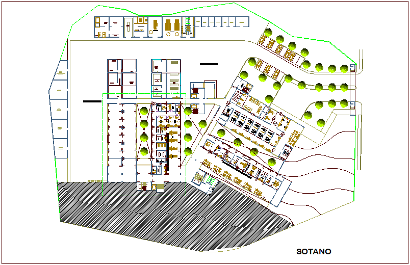 Basement plan of hospital dwg file in basement plan with view of area distribution,road area,