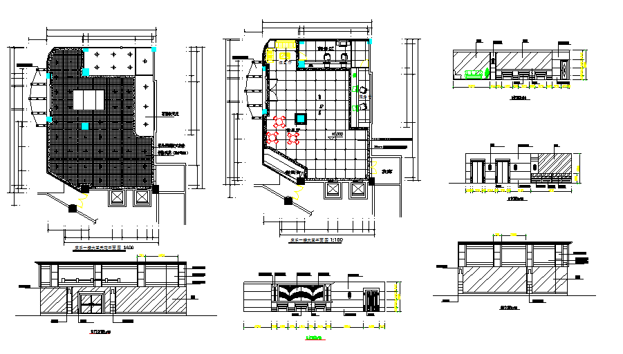 Recreation first floor lobby floor plan, lobby lobby ceiling plan , The front elevation , A ramp, Side elevation ,B ramp , C ramp etc.