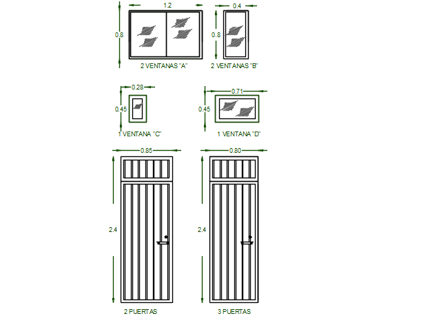 Door plan and elevation detail dwg file