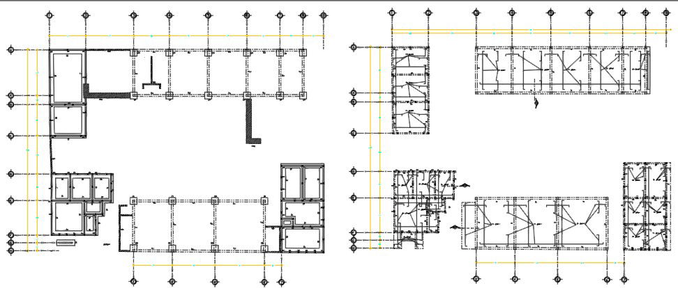 building structure plan with the detail of the beam and column, measurement and centre line drawings