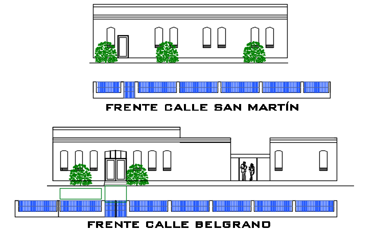 Front elevation working plan detail dwg file, Front elevation working plan detail with dimension detail, naming detail, furniture detail with door and window detail, etc.