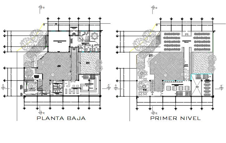 Commercial plan detail dwg file, Commercial plan detail with naming detail, dimension detail, furniture detail with chair, table, leveling detail, stair detail, etc.