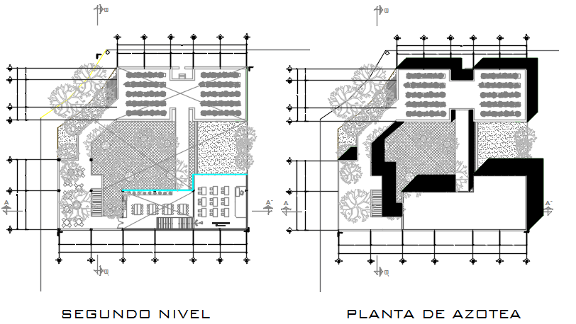Working Commercial plan detail dwg file, Working Commercial plan detail with naming detail, dimension detail, furniture detail with chair, table, leveling detail, stair detail, etc.