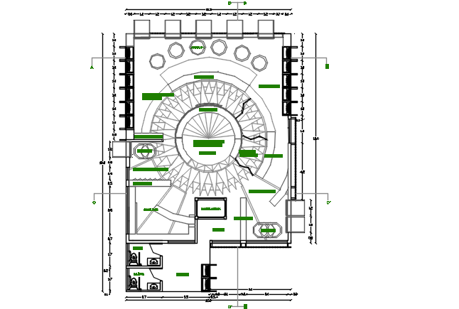Working Commercial plan detail dwg file, Working Commercial plan detail with naming detail, dimension detail, furniture detail with chair, table, leveling detail, stair detail, etc.