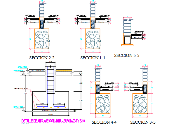 Foundation section working plan detail dwg file, Foundation section working plan detail with dimension detail, naming detail, reinforcement detail, bolt nut detail, etc.