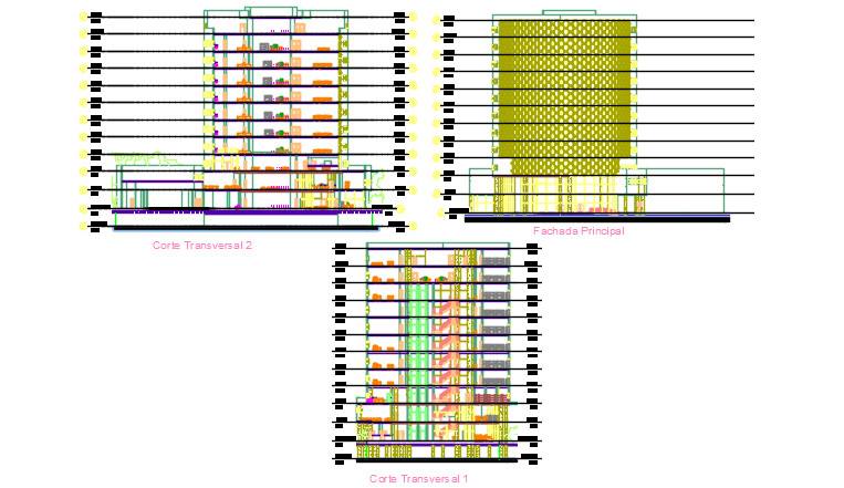 High rise building Section detail dwg file, High rise building Section detail with dimension detail, naming detail, section 1-1’ room cutting detail, section 2-2’ door and window cutting, section 3-3 detail, stair cutting detail, etc.