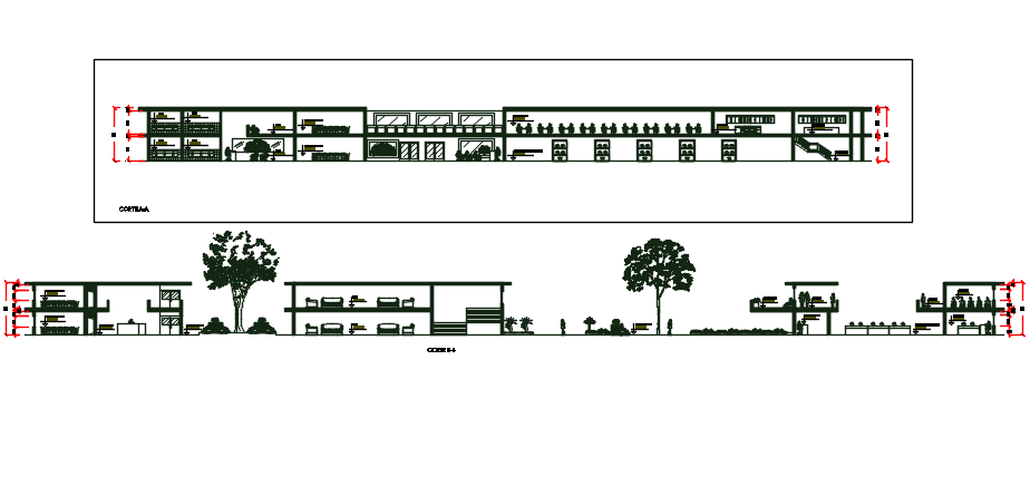 Section detail dwg file, High rise building Section detail with dimension detail, naming detail, section A-A’ room cutting detail, section B-B’ door and window cutting, stair cutting detail, etc.