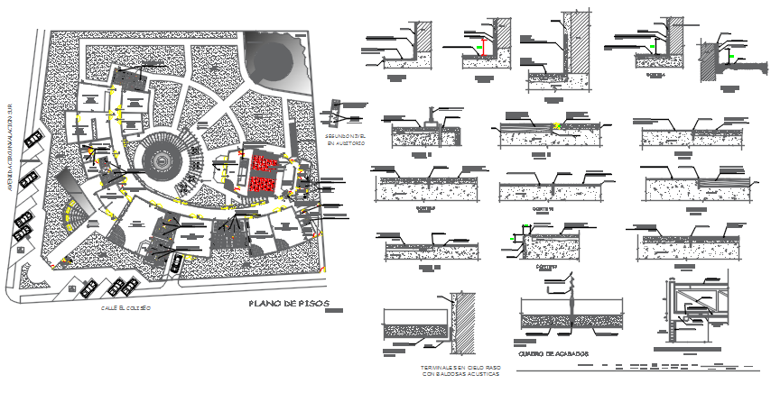 Building Construction detail dwg file, center line plan, foundation plan detail, naming detail and dimension detail, plumbing detail, water closed section detail, cut out detail, etc.