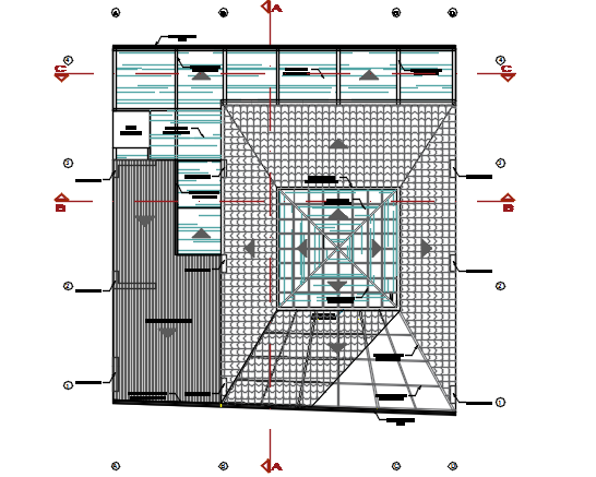 Roof working plan detail dwg file, Roof working plan detail with dimension detail, naming detail, cut out detail, center line detail with numbering detail, etc.