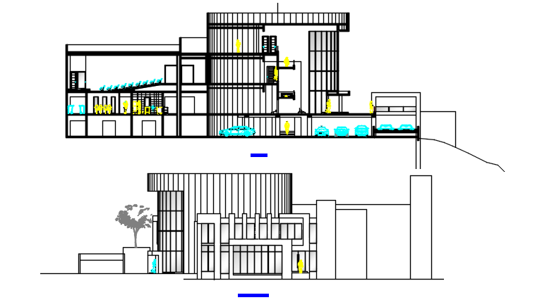 Elevation working plan detail dwg file, including dimension detail, naming detail, front elevation detail, back elevation detail, furniture detail with door and window detail, toilet detail, landscaping detail tree and plant detail, etc.