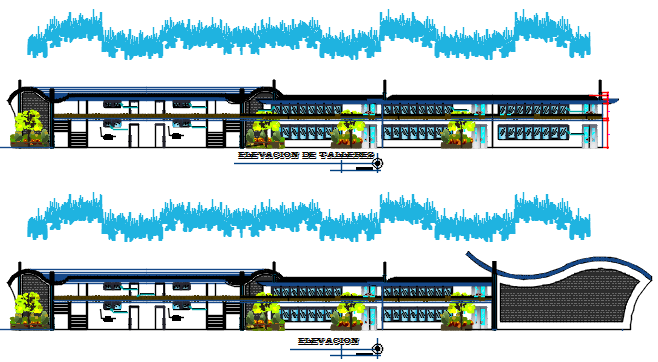 Front elevation and back elevation plan detail dwg file, including furniture detail door and window detail, main gate detail, landscaping detail with plant and tree detail, stair detail, etc.
