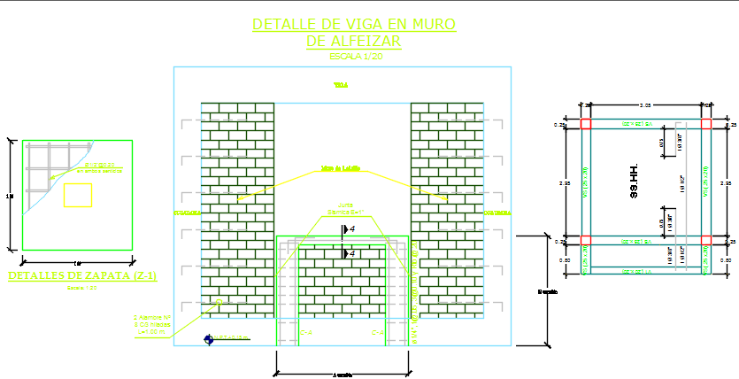 Reinforcement Wall elevation and section working plan detail dwg file, with brick wall detail, dimension detail, naming detail, reinforcement detail, etc.