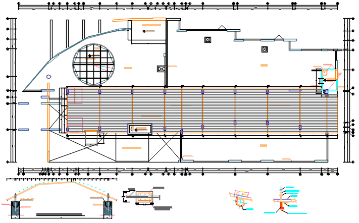 Working Commercial plan detail dwg file, including naming detail, dimension detail, stair detail, center line plan detail, roof plan detail, etc.
