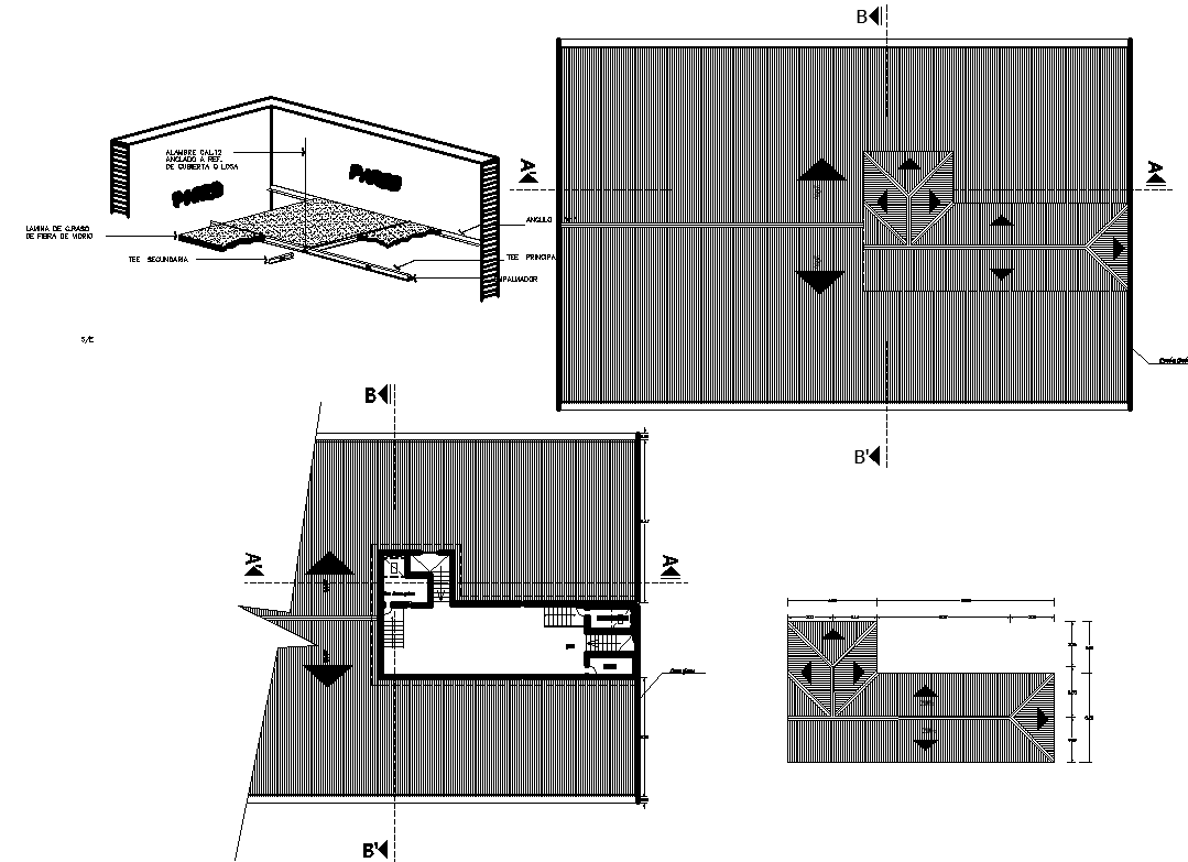 Roof plan and section detail dwg file, section line plan detail, stair detail, furniture detail with door and window detail, dimension detail, naming detail, cut out detail, etc.