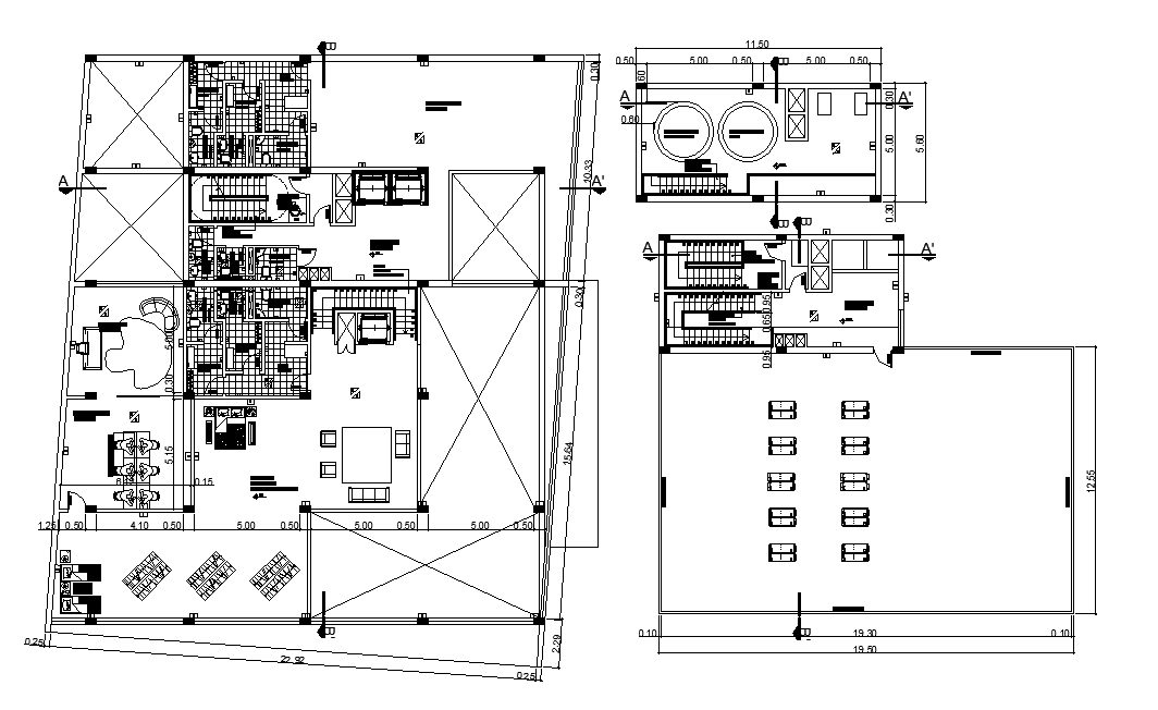 Commercial working plan detail dwg file, including section line plan detail, furniture detail in chair, table, door and window detail, dimension detail, naming detail, center line plan detail with numbering detail, car parking detail, etc.