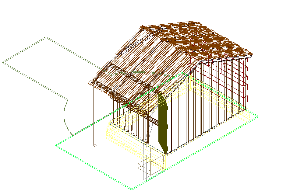 3 D front elevation detail dwg file, including roof elevation detail, stair detail, etc.